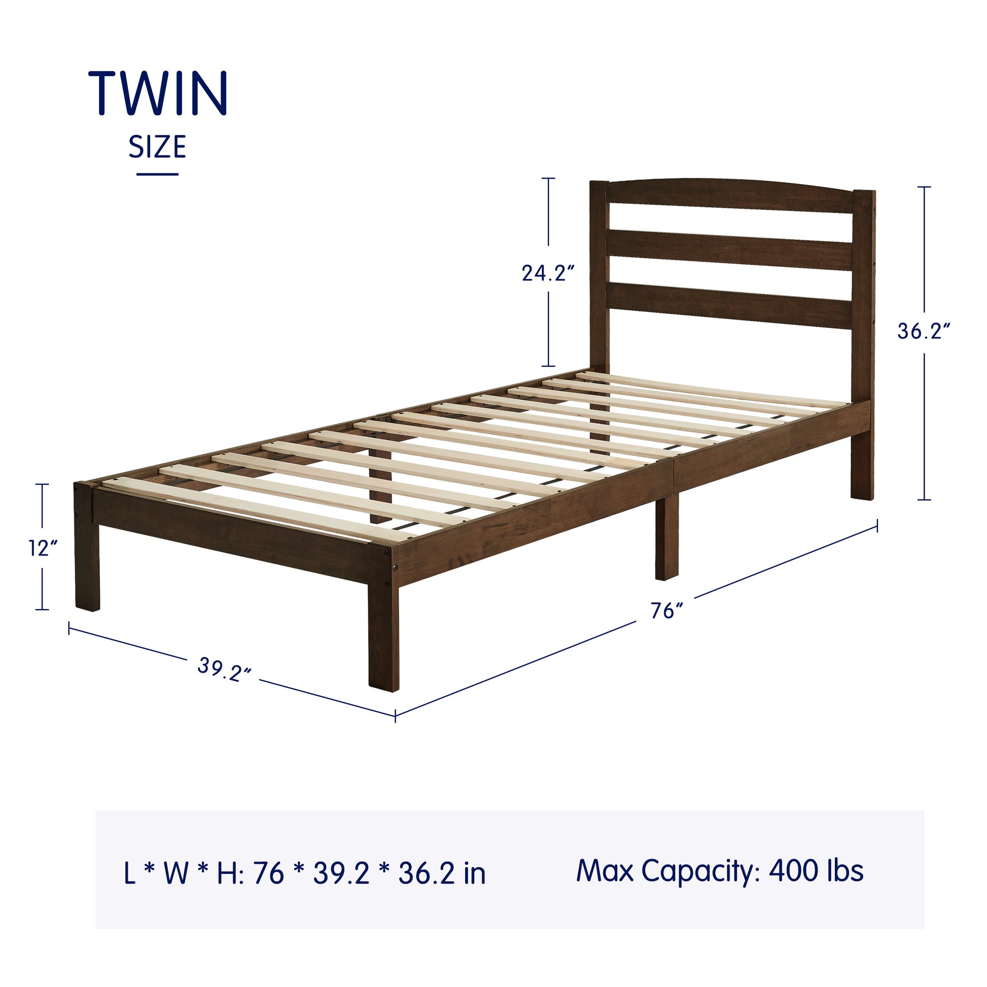 CHUN YI 12" Solid Wood Platform Bed Frame with Headboard